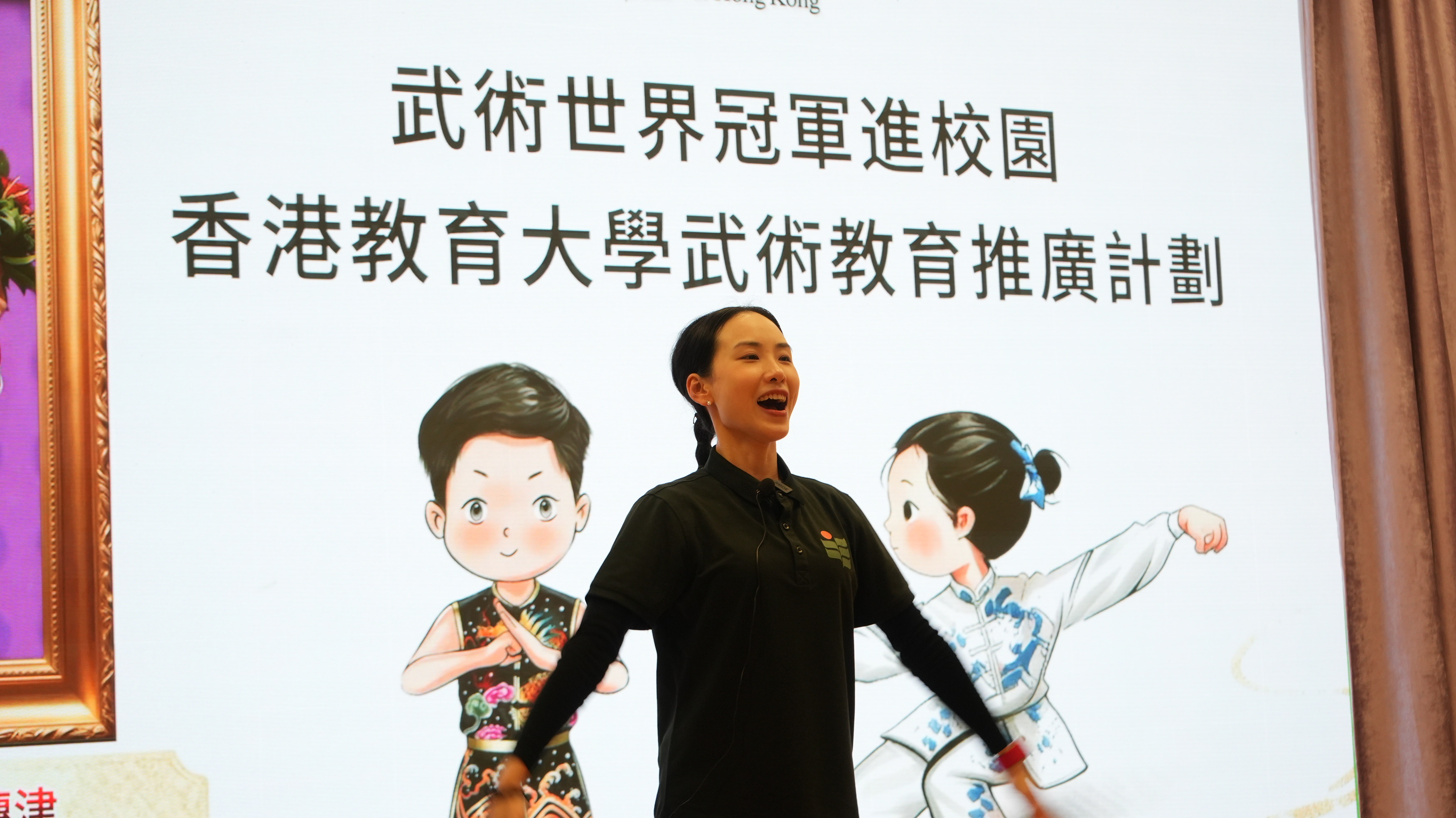 本校於2025年11月18日,榮幸地聯同香港教育大學成功舉辦「武術世界冠軍進校園」活動。是次有幸邀請到世界武術錦標賽13枚金牌得主、杭州亞運會銅牌得主、前香港精英運動員,以及現任香港教育大學長室助理項目經理的陳穗津女士擔任指導教練。陳女士親臨校園,為同學們詳細講解中華武術的獨特特色,並親身示範武術招式。在體驗環節中,同學們表現非常投入及積極,不僅展示出對中華武術運動的濃厚興趣,更從中深刻體會到堅持、努力、團隊合作等寶貴的體育精神,以及「謙虛、仁慈、正義」等中華傳統武術所蘊含的優秀品德涵養。是次活動讓同學們近距離接觸世界級武術冠軍,獲益良多,同時亦加深了大家對中華優秀傳統文化的認識與熱愛。