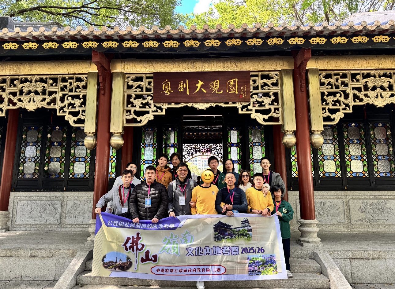公民與社會發展科舉辦為期兩日一夜的佛山嶺南文化內地考察。行程包括:參訪佛山鴻勝館、佛山嶺南天地、南風古灶及製陶廳、粵劇大觀園等,藉此促進學生對當地文物保育與傳承工作的認識、探討維護文化安全的重要性,並了解嶺南文化的歷史、特色和發展。是次考察參與學生共6位中六級同學,過程中學生積極參與和投入,家長與學生完成專題研習冊,有著愉快的學習體驗。
