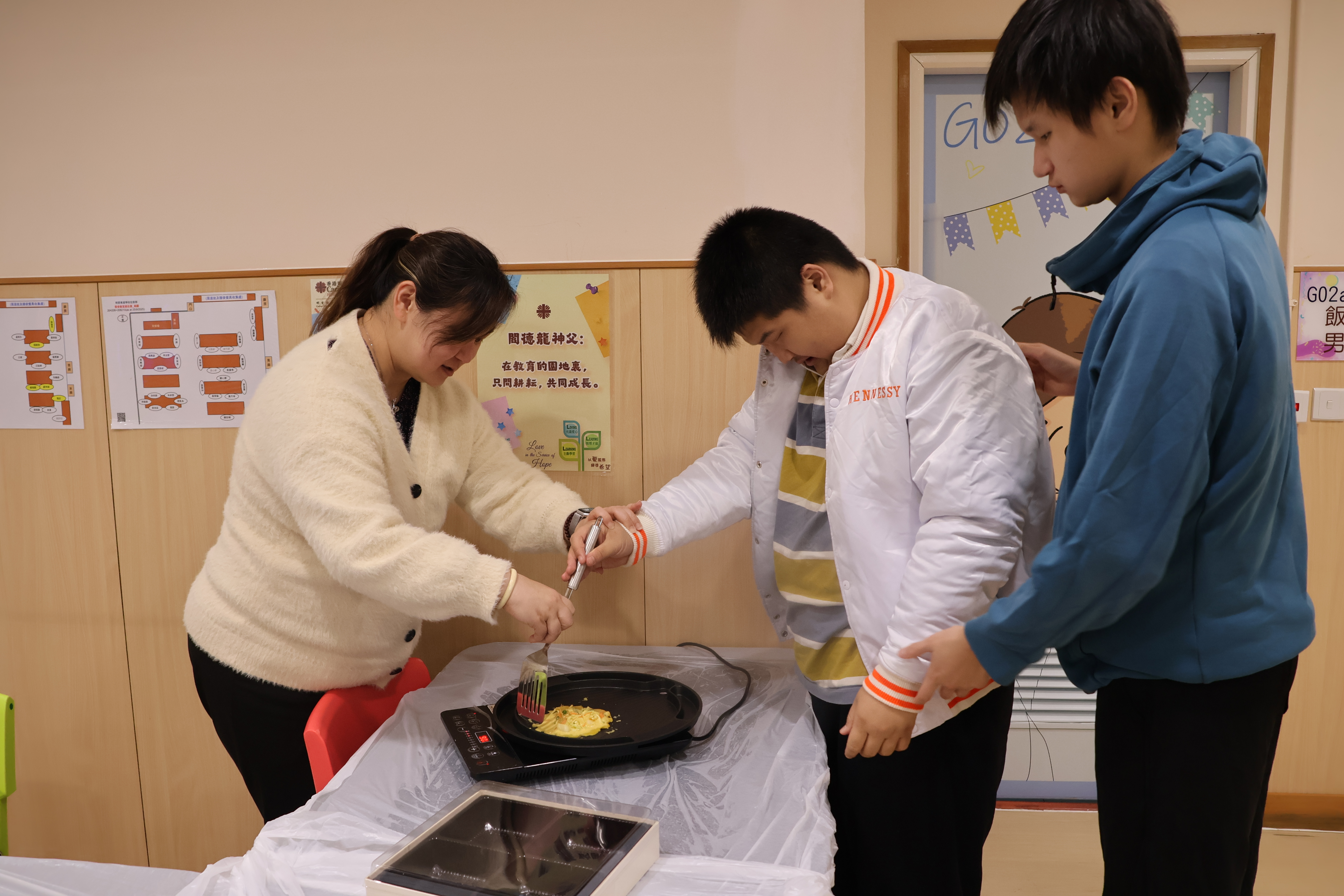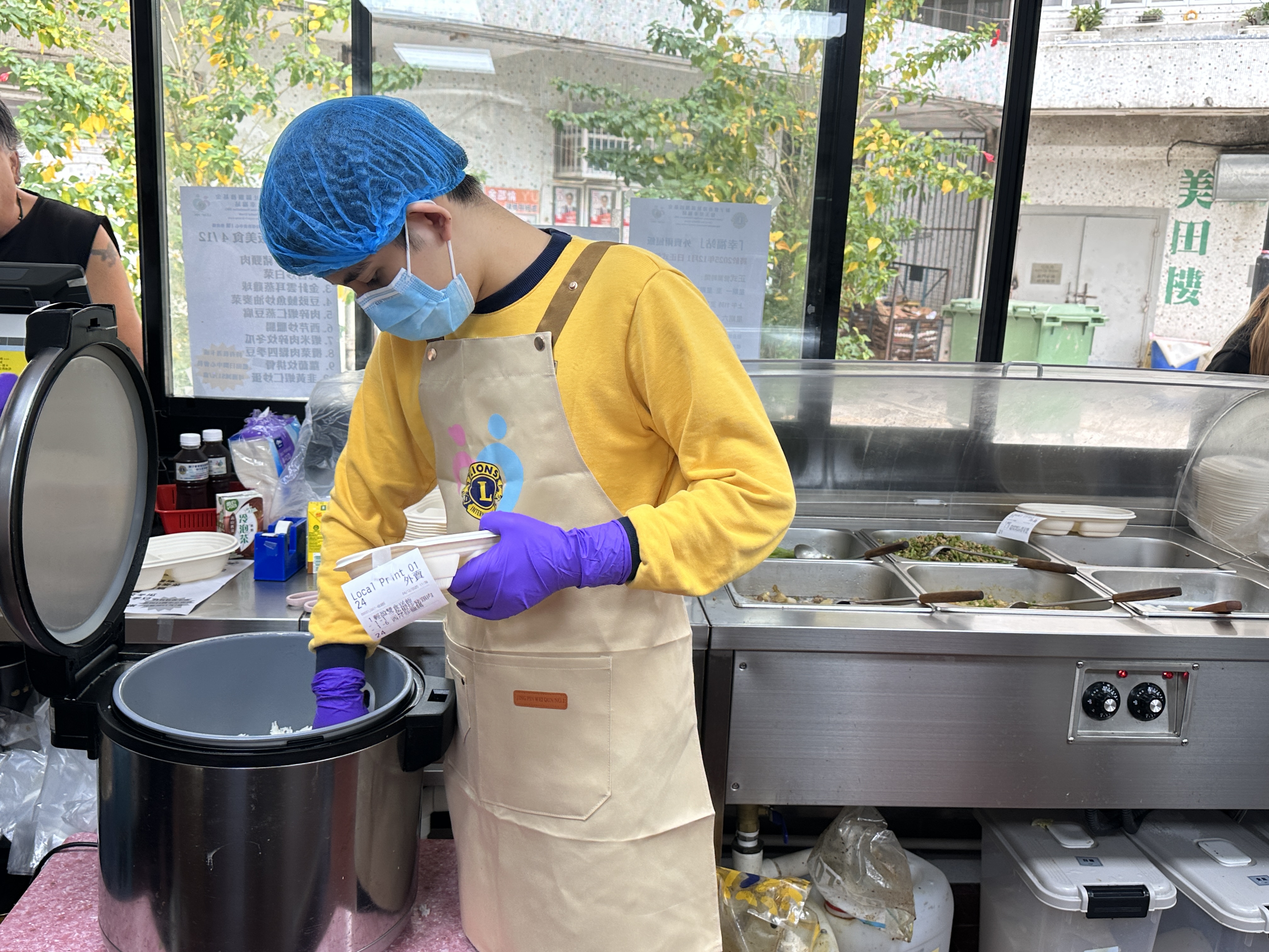 學生到獅子會香港社區服務基金包玉星「幸福站」進行工作實習,是次實習別具意義!學生在廚房進行備膳工作,並運用炒餸機製作午餐。同時,學生為大埔受火災影響的居民準備愛心午餐盒,並搬運到指定地點轉交大埔居民,學習關愛社會上有需要的人及回饋社會。