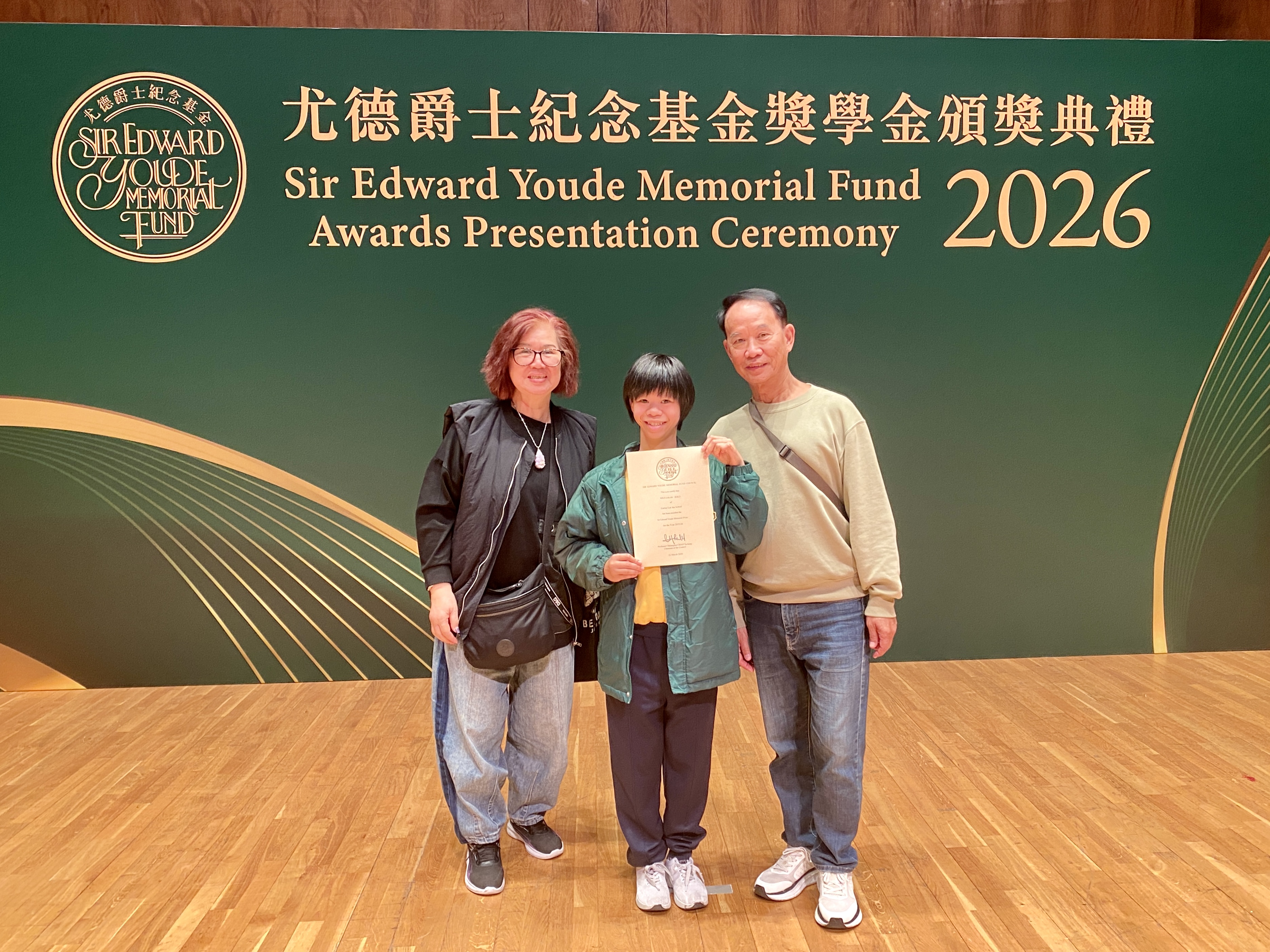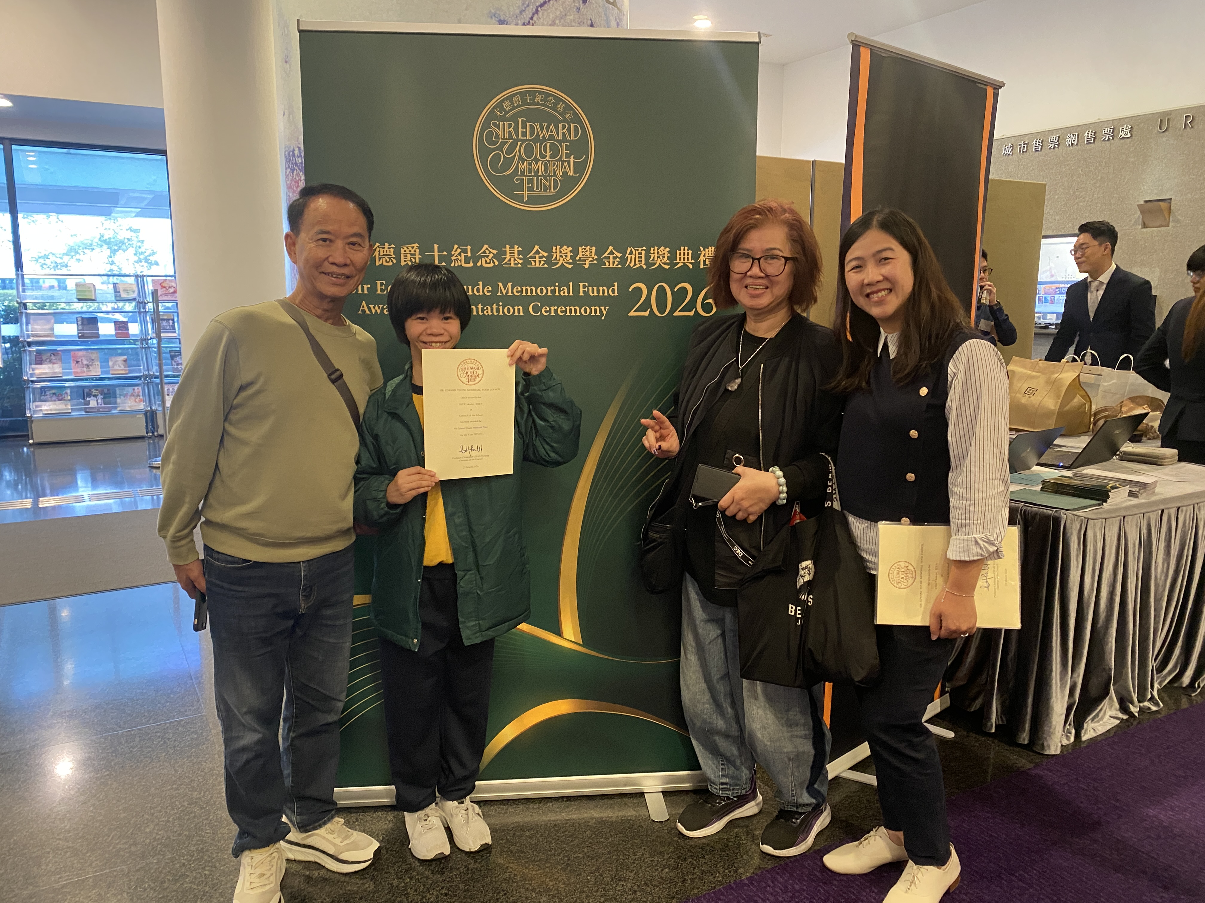26年度尤德爵士紀念基金 – 高中學生獎》,表揚兩位學生在學習、體藝、