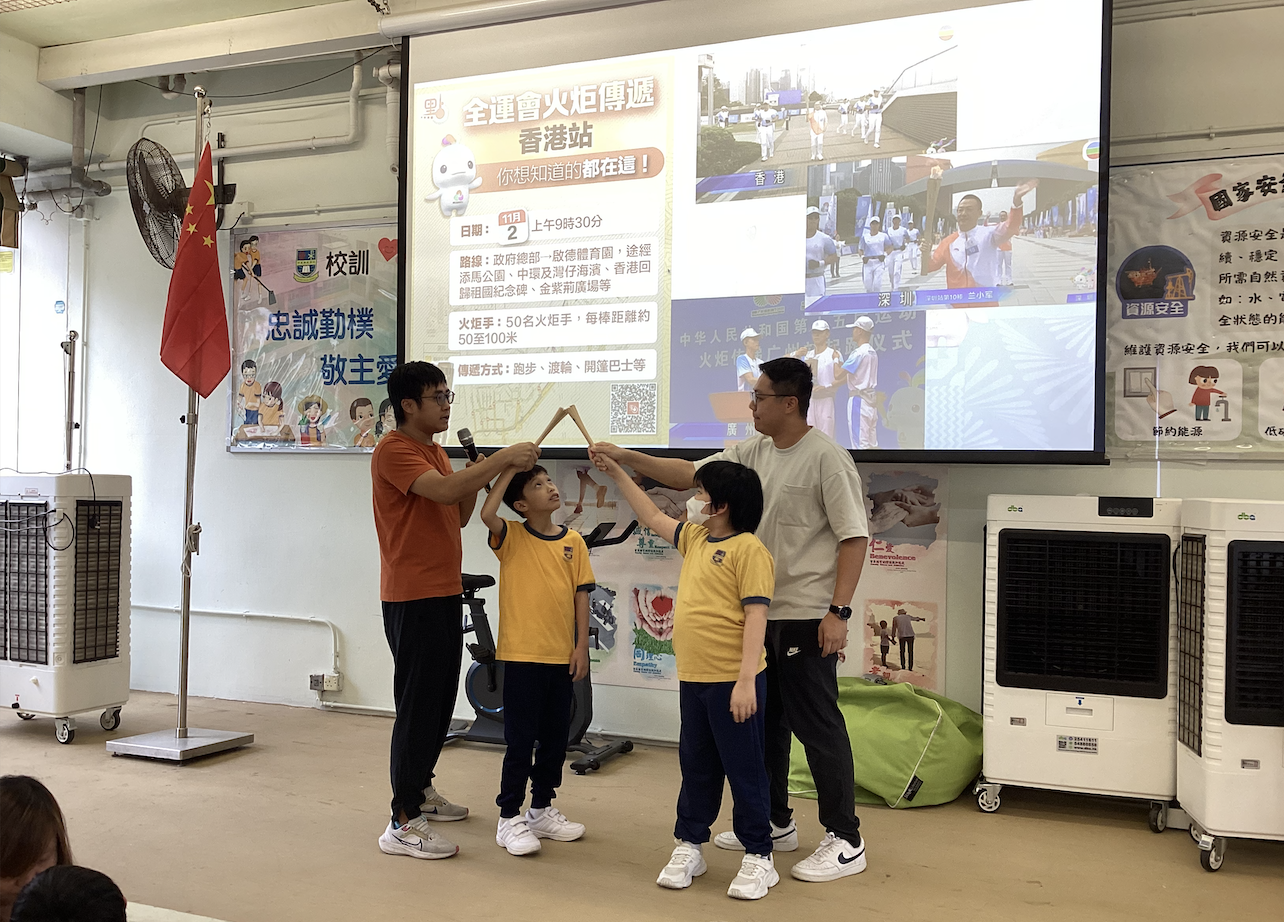 為了提升校內盛事氣氛,在集會期間分享全運會最新資訊,邀請學生參與模擬傳送火炬儀式,象徵樂進全民參與的精神。同時,在學校的各處設立資訊站,張貼有關全運會資訊及香港運動員得奬新聞,鼓勵師生們齊來支持第十五屆全國運動會,共同見證歷史時刻。